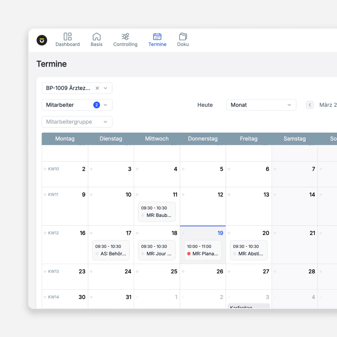 Projektbezogene Termine verwalten, mit dem Kalender synchronisieren und direkt mit Aufgaben verknüpfen – damit Ihr Team weiß, was wann ansteht.