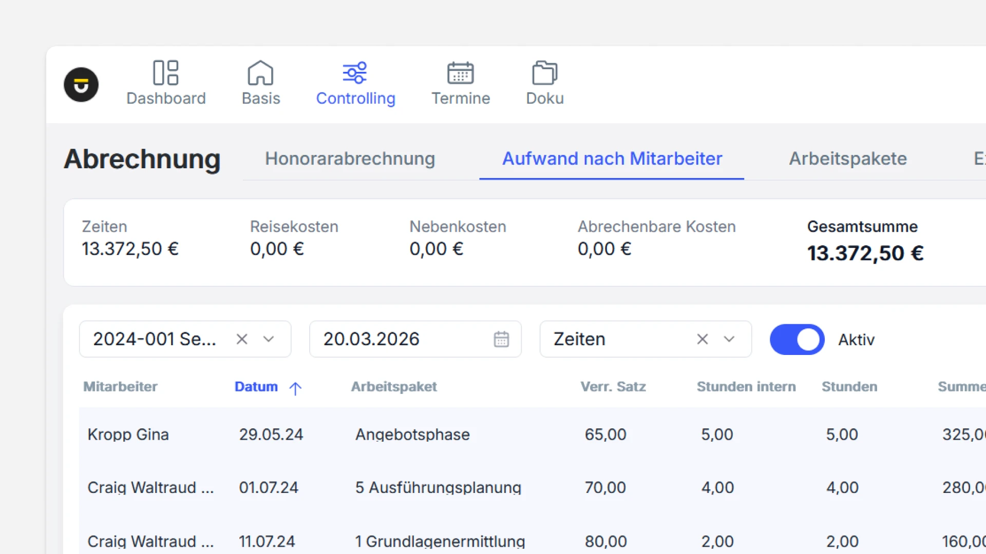 Vollständige, präzise Aufwandsabrechnung.