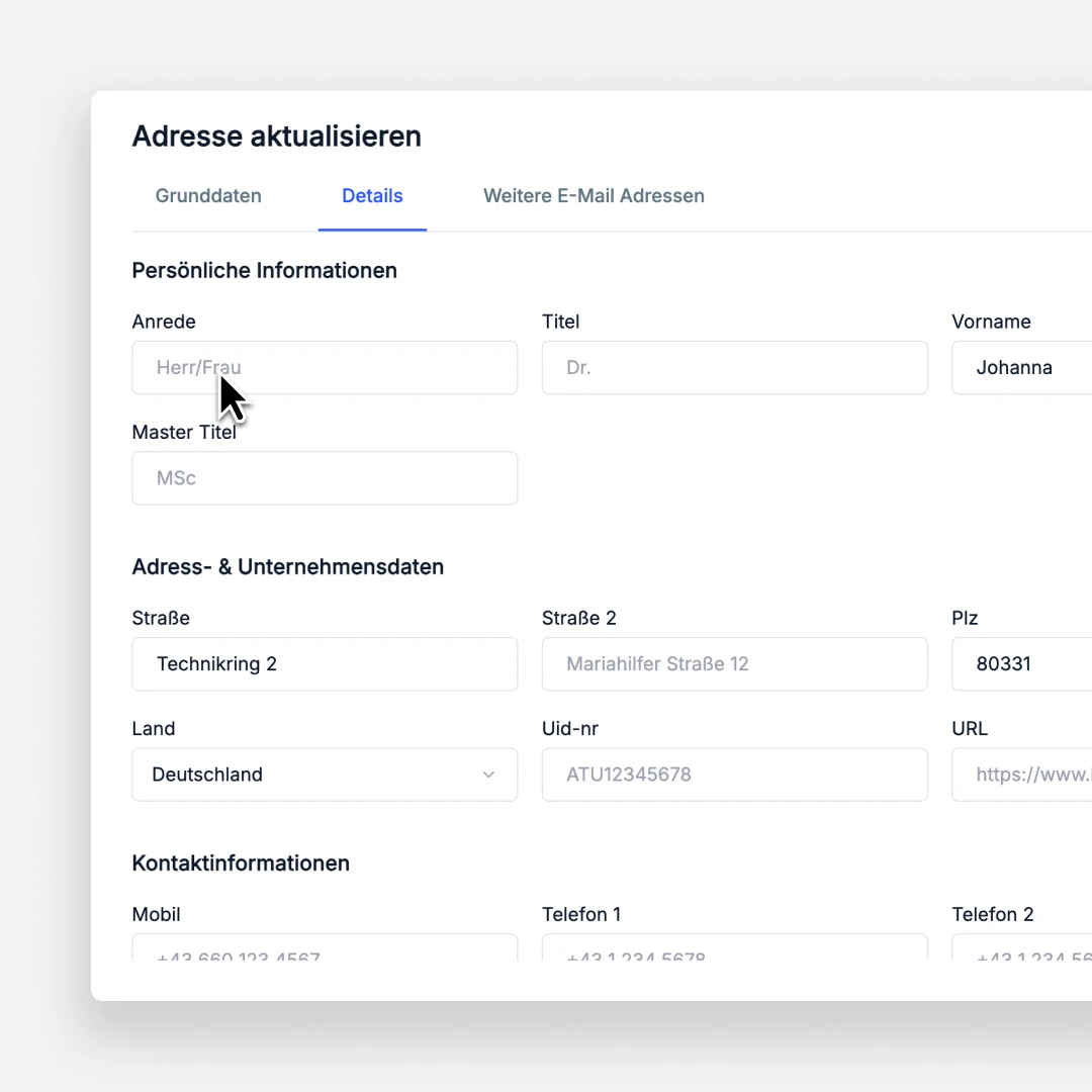 Adressen in untermStrich sind keine isolierten Datensätze. Sie sind mit Projekten, Dokumenten und Kommunikation verknüpft – und damit aktiver Teil des Büroalltags.