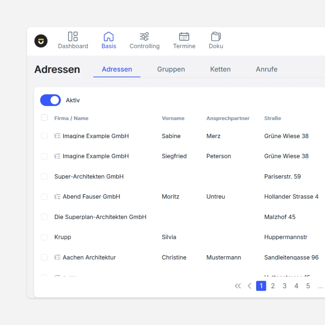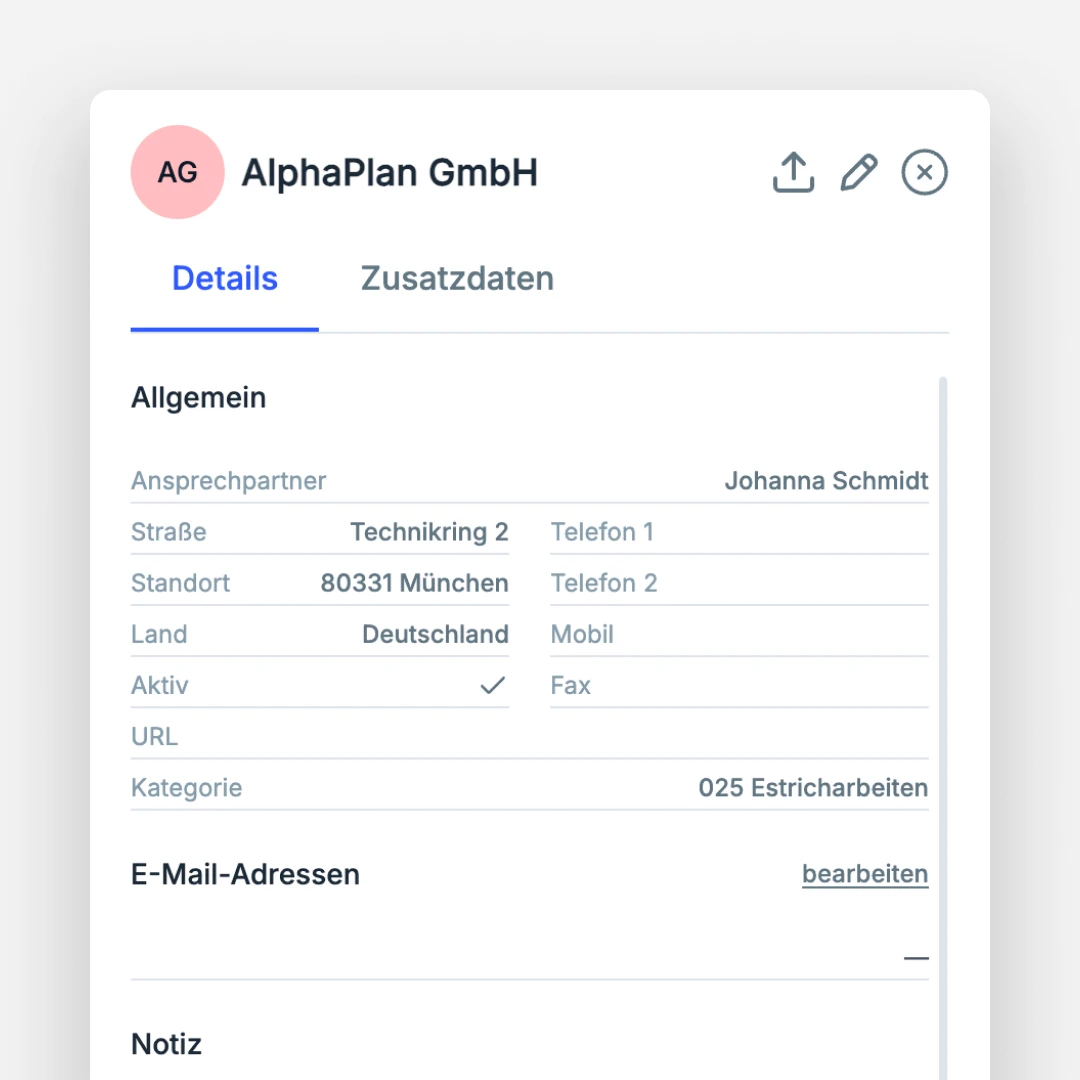 Im Projektalltag eines Planungsbüros entstehen Kontakte zu Auftraggebern, Behörden, Planern, Lieferanten und vielen weiteren Beteiligten. In untermStrich werden all diese Adressen zentral verwaltet – strukturiert, filterbar und direkt mit dem Projektkontext verknüpft.